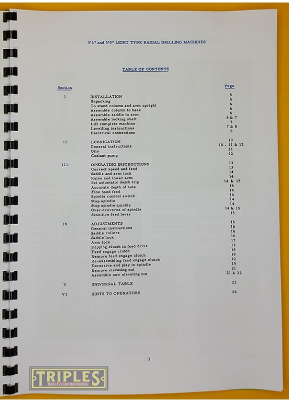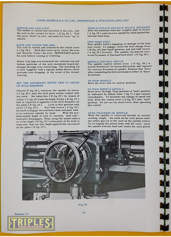 Archdale 3' 6" & 5' 0" Light Type Radial Drilling Machines. Maintenance and Operating Instructions.