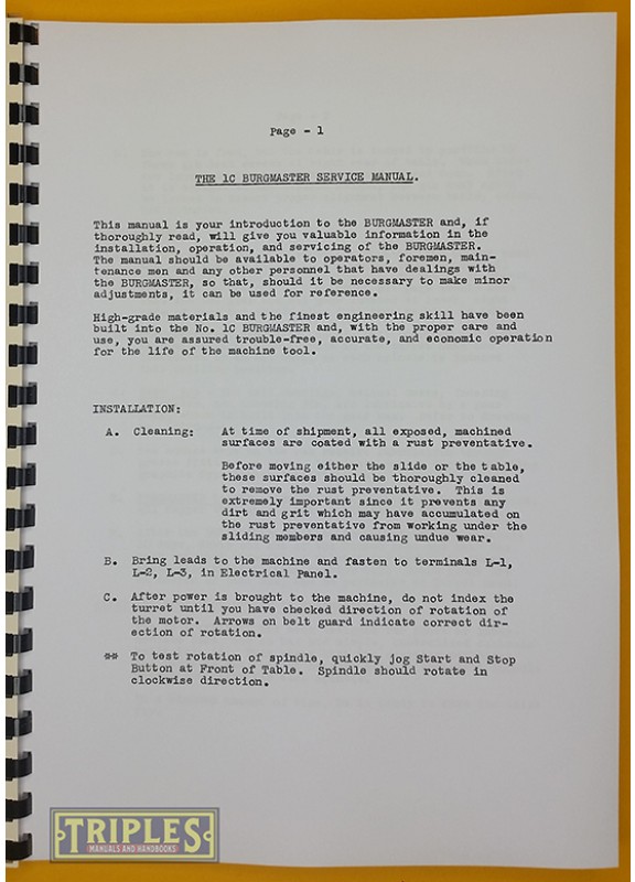 Burgmaster Model 1-C Turret Drill Service Manual.
