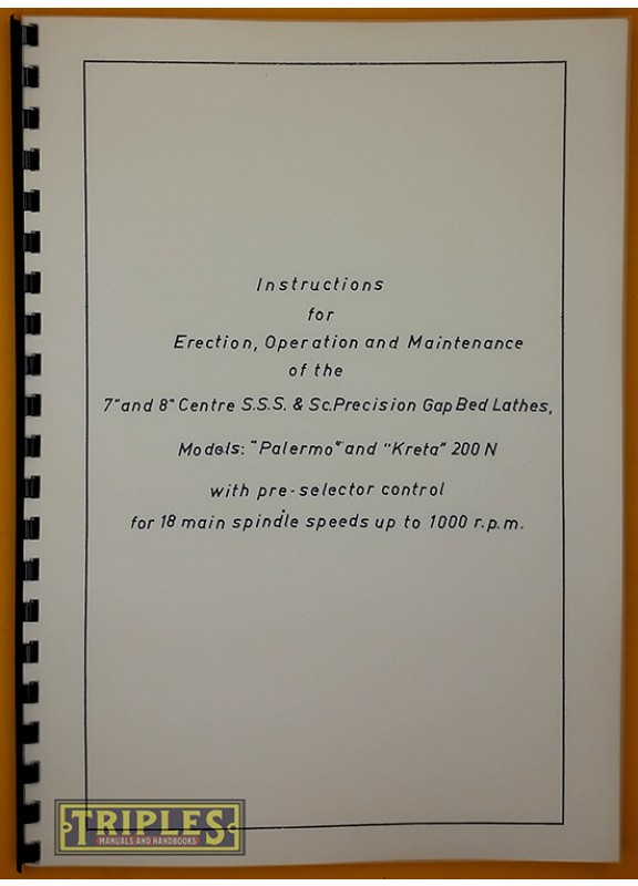 Eriksen Palermo and Kreta 200N Lathe. Instructions for Erection, Operation and Maintenance.