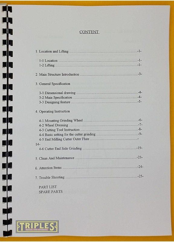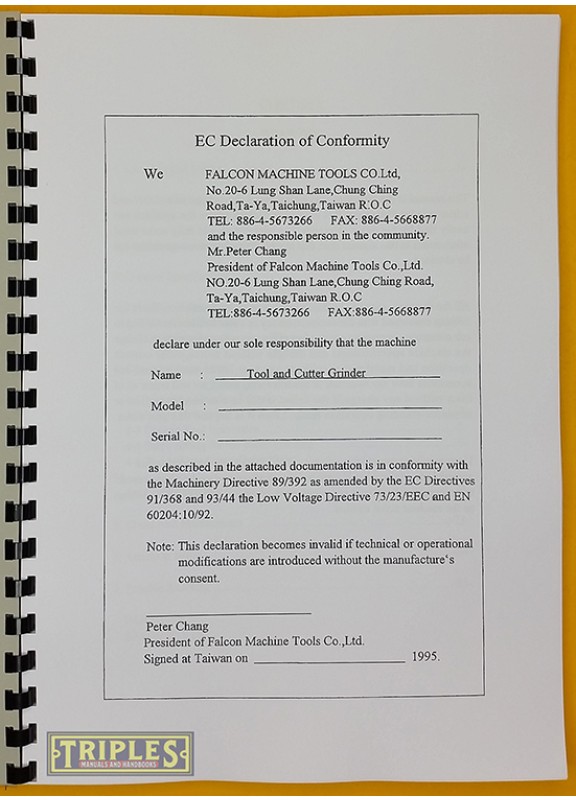 Falcon Chevalier 610 Universal Tool and Cutter Grinder Operating Manual.