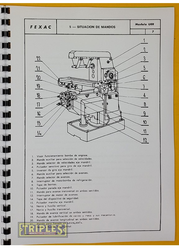 Fexac UER Horizontal Milling Machine. Operating Instruction. (Spanish)