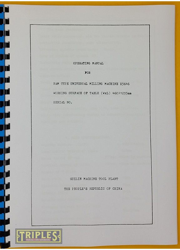 Guilin Universal Ram Type Milling Machine X5646 Operating Manual.