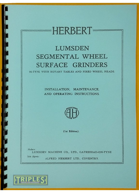 Tags: Herbert Lumsden 90-Type Segmental Wheel Surface Grinders Installation Maintenance Operating Instructions