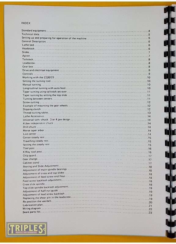 CQ6123 Lathe Operation Manual and Service Parts. (Early Model)
