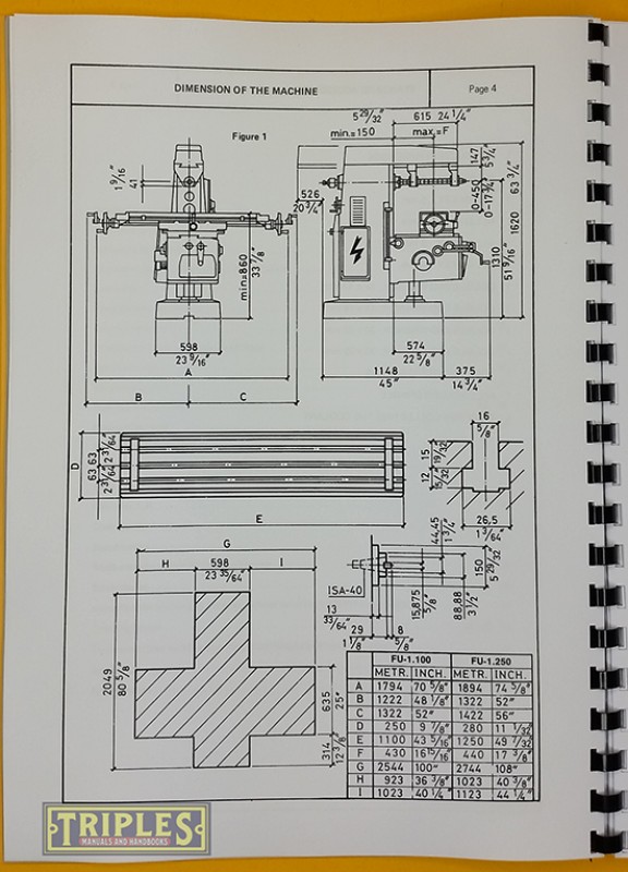 Pacific FU-1.100 FU-1.250 Universal Milling Machine. Instruction Manual and Parts Book.