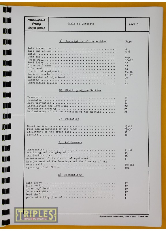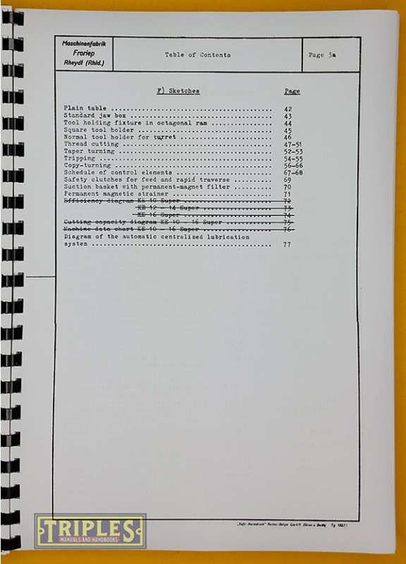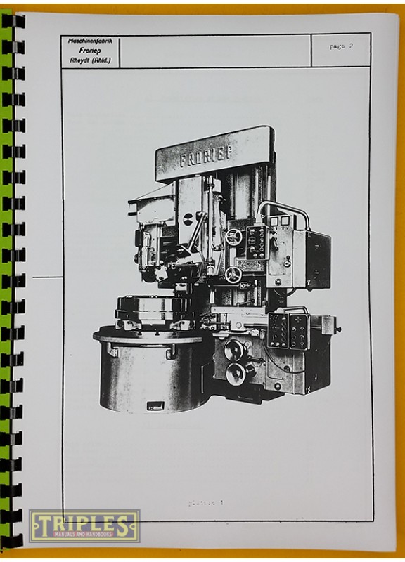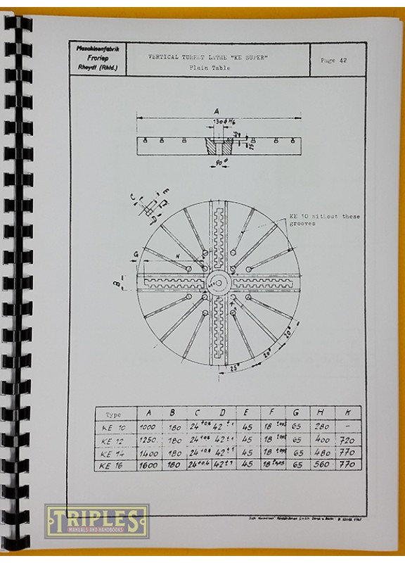 Froriep KE 16 Super Vertical Turret Lathe Operation Manual.